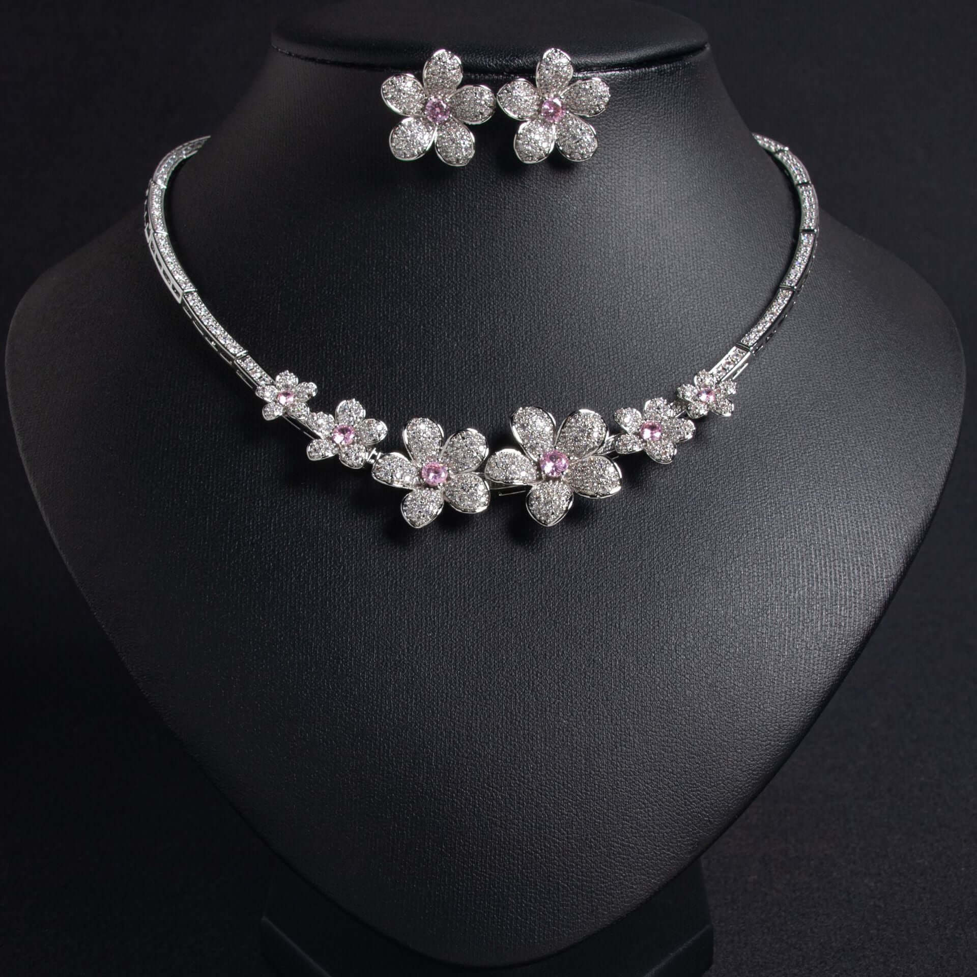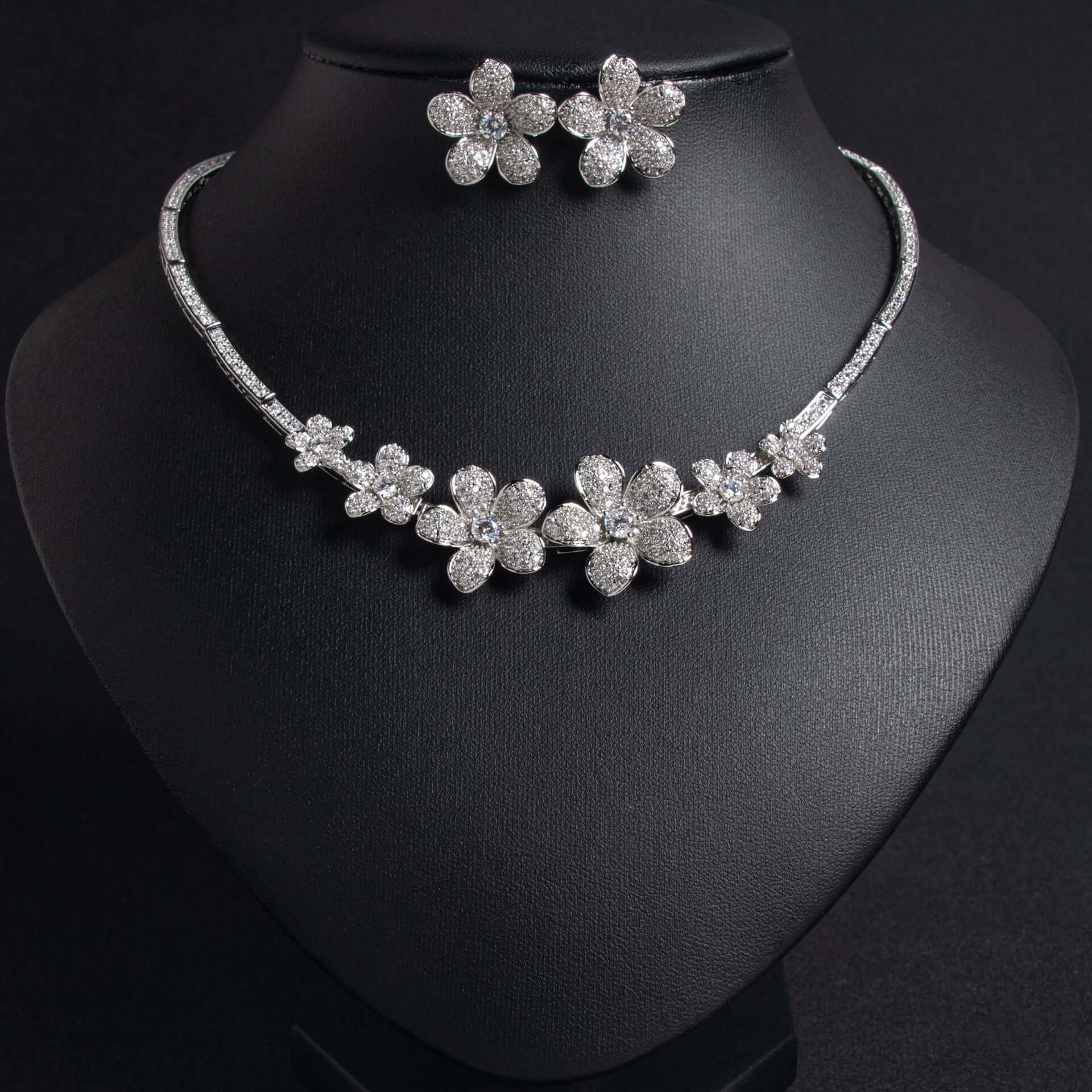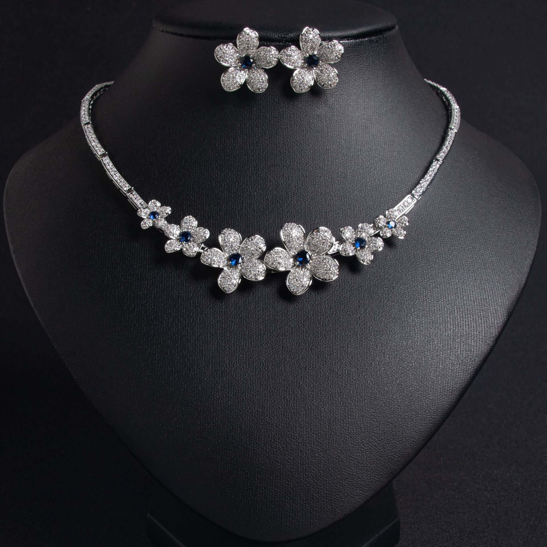 Necklace Earrings Set Fashion Luxury Zircon Flower Wedding Dress Accessories Bridal Necklace Set Wedding Jewelry